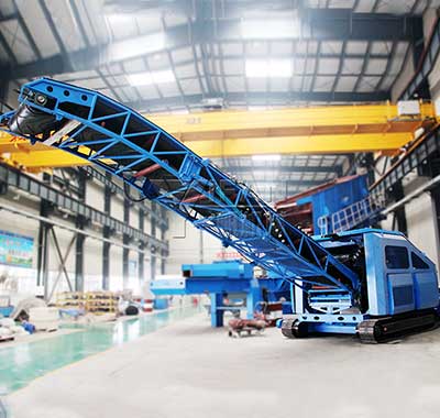履帶式取料機采用先進可靠的技術,極大地提高工作效率,降低勞動強度,縮短車船、飛機的裝卸時間。是企業(yè)降低產品成本,提高效率和產品質量的有效設備。 可以把港口、煤礦、沙石礦、物流中心、大型散貨存放地的散裝物料直接輸送到大型卡車、輪船、飛機上,裝車效率高,速度快,每小時最高可達800噸以上。