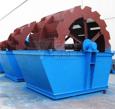 工作時,電機(jī)通過三角帶、減速機(jī)、齒輪減速后帶動葉輪緩慢轉(zhuǎn)動,砂石有給料槽進(jìn)入洗槽中,在葉輪的帶動下翻滾,并互相研磨,除去覆蓋砂石表面的雜質(zhì),同時破壞包覆砂粒的水汽層,以利于脫水;同時加水,形成強(qiáng)大水流,及時將雜質(zhì)及比重小的異物帶走,并從溢出口洗槽排出,完成清洗作用。干凈的砂石由葉片帶走,最后砂石從旋轉(zhuǎn)的葉輪倒入出料槽,完成砂石的清洗作用。