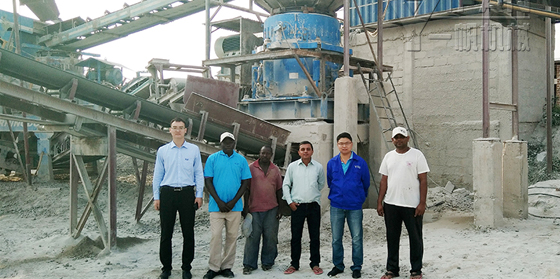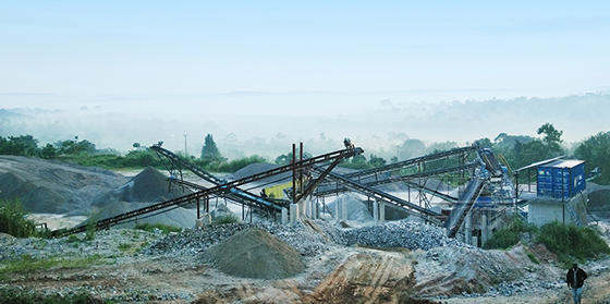 大塊石料由振動(dòng)給料機(jī)均勻地送進(jìn)顎式破碎機(jī)進(jìn)行粗碎;粗碎后的石料由膠帶輸送機(jī)送到圓錐破碎機(jī)進(jìn)一步細(xì)碎;細(xì)碎后的石料由膠帶輸送機(jī)送進(jìn)圓振動(dòng)篩進(jìn)行篩分,以達(dá)到我們需求的精細(xì)物料。整個(gè)生產(chǎn)流程根據(jù)環(huán)保需要,可配備除塵設(shè)備。