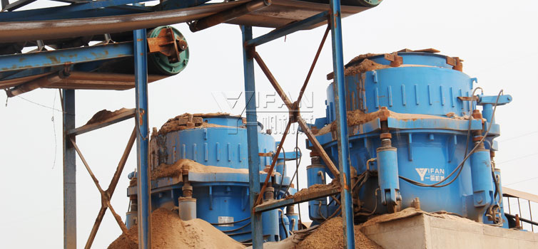 第一條生產(chǎn)線是由以下幾個(gè)機(jī)器配合完成的,振動(dòng)給料機(jī)-顎式破碎機(jī)-振動(dòng)篩-圓錐式破碎機(jī)-振動(dòng)篩。