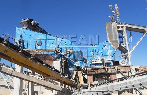 先由振動給料機(jī)給料,然后進(jìn)入顎式破碎機(jī)進(jìn)行粗破,由皮帶機(jī)傳送至反擊式破碎機(jī)進(jìn)行二次破碎,一部分物料由篩子篩分出去,而另一部分物料則由皮帶機(jī)反料至反擊破,最后再經(jīng)過篩子篩出所需的成品物料。如此循環(huán),即完成整套生產(chǎn)流程。一帆機(jī)械全程提供石灰石生產(chǎn)線的設(shè)計(jì)、安裝、調(diào)試工作,歡迎您前來咨詢!